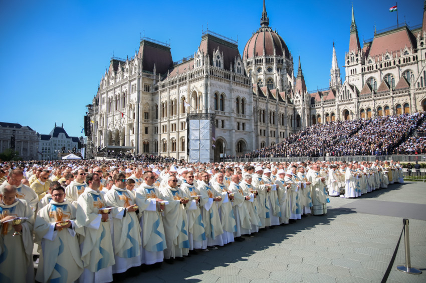 A szentmisén koncelebrált Erdő Péter bíboros mellett Veres András győri megyéspüspök, a Magyar Katolikus Püspöki Konferencia (MKPK) elnöke, Kocsis Fülöp hajdúdorogi érsek-metropolita, az MKPK tagjai, Pietro Parolin vatikáni bíboros államtitkár; Paul Richard Gallagher érsek, a szentszéki államközi kapcsolatok titkára, a vatikáni delegáció tagjai; több mint ötven püspök és hétszázötven pap a határon túlról és távolabbról.