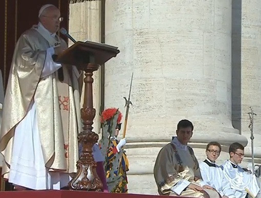 Láttuk ezt ezekben a napokban – folytatta Ferenc pápa – a rendkívüli püspöki szinódus alatt (a „szinódus” ezt jelenti: „együtt menni előre”). Pásztorok és világiak a világ minden részéről elhozták ide Rómába helyi egyházaik hangját, hogy segítsék a mai családokat az evangélium útján járni, tekintetüket Jézusra szegezve. Nagy tapasztalatot éltünk meg: a szinodalitást és a kollegialitást, éreztük a Szentlélek erejét, aki vezeti és megújítja az egyházat, amely arra hivatott, hogy eltökélten gondozza a vérző sebeket és felszítsa a reményt a sok-sok reményvesztett emberben.