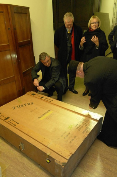 Az ikont a repülőtéren a Szentszék ukrán nagykövete, Tetyána Izevszka és a lengyel nagykövet, Piotr Nowina-Konopka, valamint a Vatikán több képviselője fogadta.
