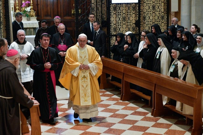 Sokan jönnek Olaszországból és a világ minden tájáról a csöndnek és az áhítatnak ebbe az oázisába, hogy erőt és reményt merítsenek. Itt főleg a fiatalokra, a családokra és a betegekre gondolok.