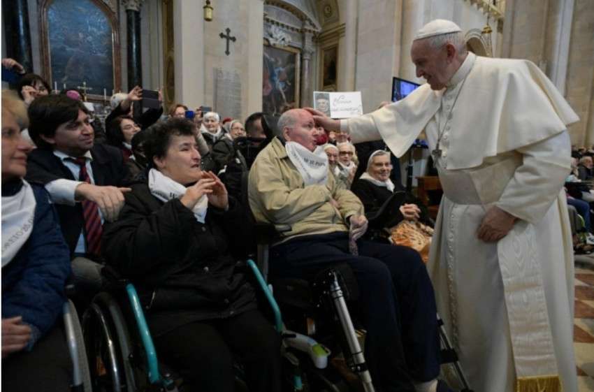 Mária háza a betegek háza. Itt befogadást találnak a testben és lélekben szenvedők, és az Anya mindenkinek elhozza az Úrnak nemzedékről nemzedékre megmutatkozó irgalmát. A betegség megsebzi a családot, és a betegeknek a családon belül kell befogadásra találniuk. Ne süllyedjünk bele a kidobás kultúrájába, amelyet a bennünket támadó sokféle ideológiai gyarmatosító törekvés javasol! Az otthon és a család nyújtja az első gondozást a betegnek azáltal, hogy az otthoniak szeretik, támogatják, bátorítják és gondját viselik. Látjuk hát, ezért jelképe a betegek minden befogadó otthonának és kegyhelyének az itteni Szent Ház kegyhelye. Innen szeretném üzenni nekik, mindannyiuknak, bárhol éljenek is a világon, hogy szeretettel gondolok rájuk, és azt mondom: Krisztus művének középpontjában vagytok, megosztjátok és a legkonkrétabb módon hordozzátok az ő keresztjét, mögötte haladva nap mint nap. Szenvedésetek nagyon fontos hozzájárulás lehet Isten országának eljöveteléhez.