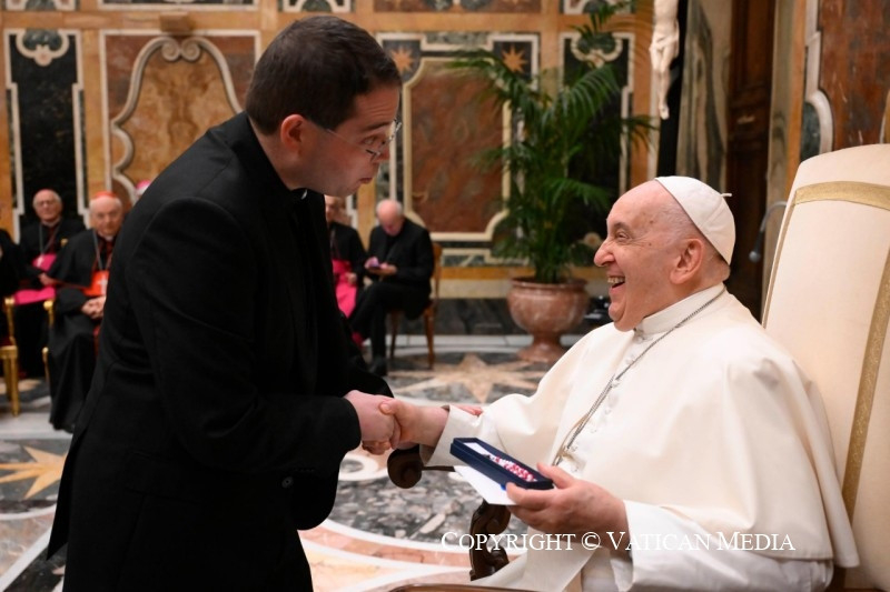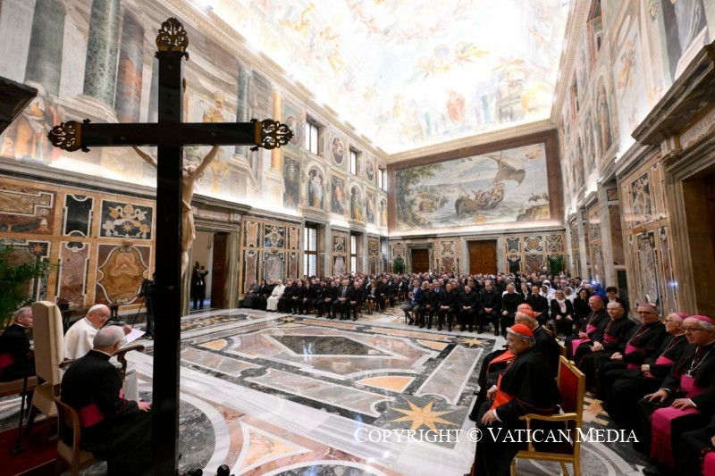 A Szentatya az audiencián üdvözölte Marcello Semeraro bíboros prefektust, az elöljárókat, a posztulátorokat, Vincenzo Paglia érseket; majd az életszentség közösségi dimenziójáról osztotta meg velük gondolatait. Megköszönte a Gaudete et exultate kezdetű apostoli buzdítás kommentárját, melyet a dikasztérium adott ki Ferenc pápa péteri szolgálatának tizedik évfordulója alkalmából. A kötetben megjelent gondolatok remélhetőleg sokaknak segítenek jobban megérteni az életszentségre szóló egyetemes meghívást.