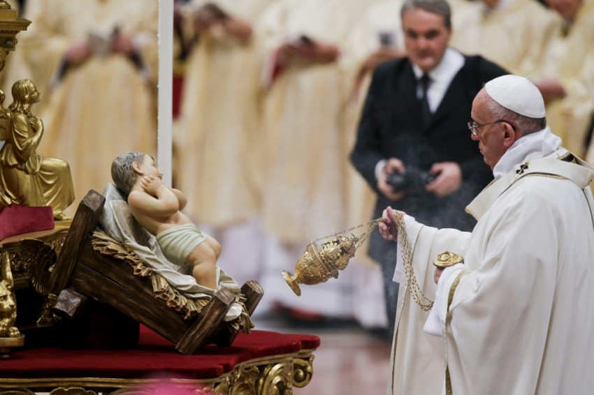 Ferenc pápa a karácsony vigíliájának ünnepi szentmiséjét este fél tíztől mutatta be Rómában a Szent Péter-bazilika katedraoltáránál. Az eredetileg éjfélkor bemutatott misét II. János Pál pápaságának utolsó éveiben hozták korábbra.