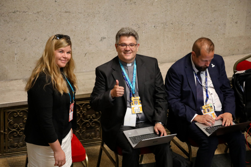 Steinbach József református püspök, a Magyarországi Egyházak Ökumenikus Tanácsának tizenkét tagegyháza nevében köszöntötte Ferenc pápát. A püspök azt fogalmazta meg, hogy minden Eucharisztia hálaadás Isten előtt Jézus Krisztusért, akit azért küldött a világba, hogy aki hisz Őbenne, el ne vesszen, hanem örök élete legyen. „Ez az ajándék kötelez bennünket, hogy mi is megajándékozzuk egymást ezzel az isteni szeretettel, hogy vigyázzunk egymásra, értelmes, szép életet éljünk, óvjuk a lakott földet, imádkozzunk és cselekedjünk egymásért, hogy mindannyiunk élete kiteljesedhessen – az Isten dicsőségére és a másik ember javára.