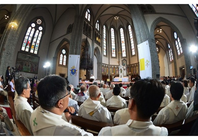 Bízom abban, hogy a barátság és az együttműködés lelkületével – más keresztényekkel, más vallások követőivel és minden jóakaratú férfival és nővel, akik szívükön viselik a koreai társadalom jövőjét – Isten országának kovászai lesztek ezen a földön. A békéért és a kiengesztelődésért mondott imáink akkor tisztább szívekből szállnak majd fel Istenhez kegyelmi ajándékáért, és elnyerik azt az értékes kincset, amelyre mindannyian vágyunk” – hangzott el a pápa homíliájában.