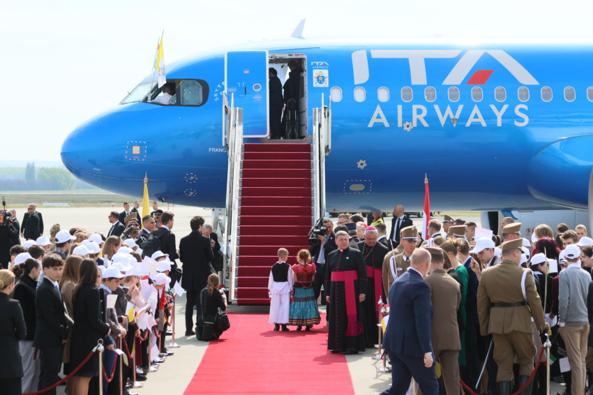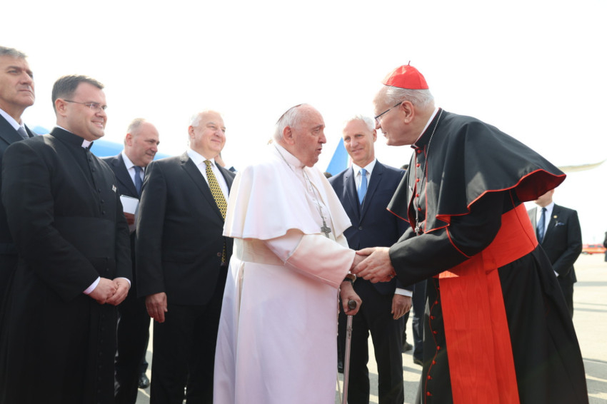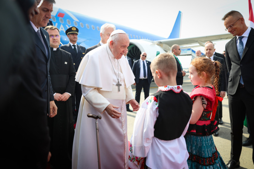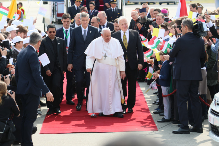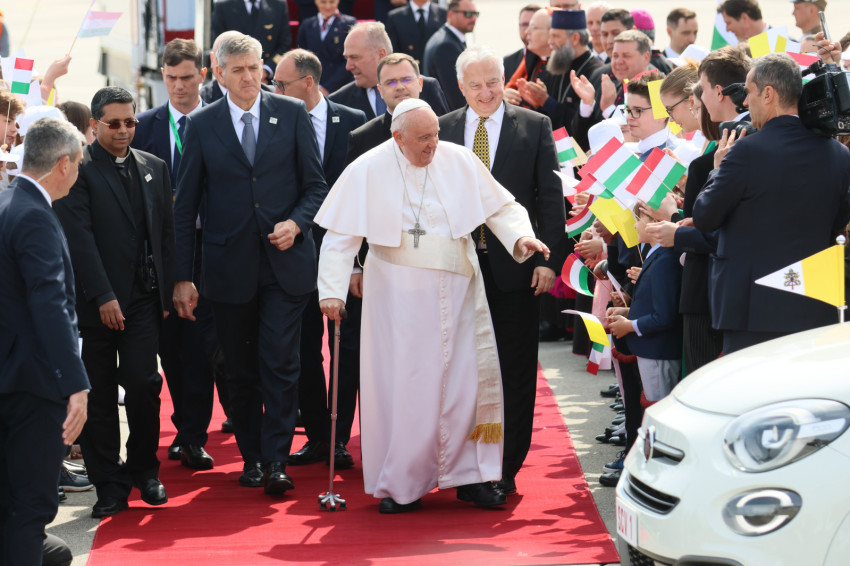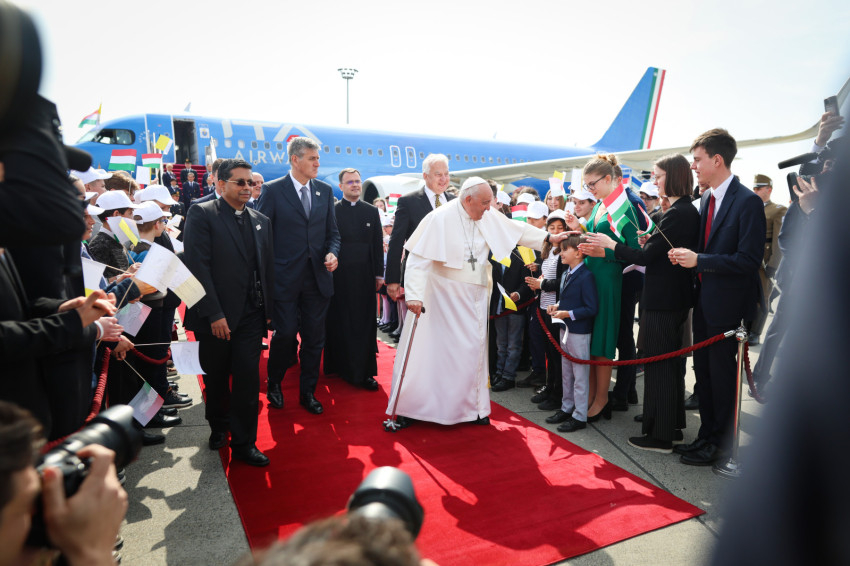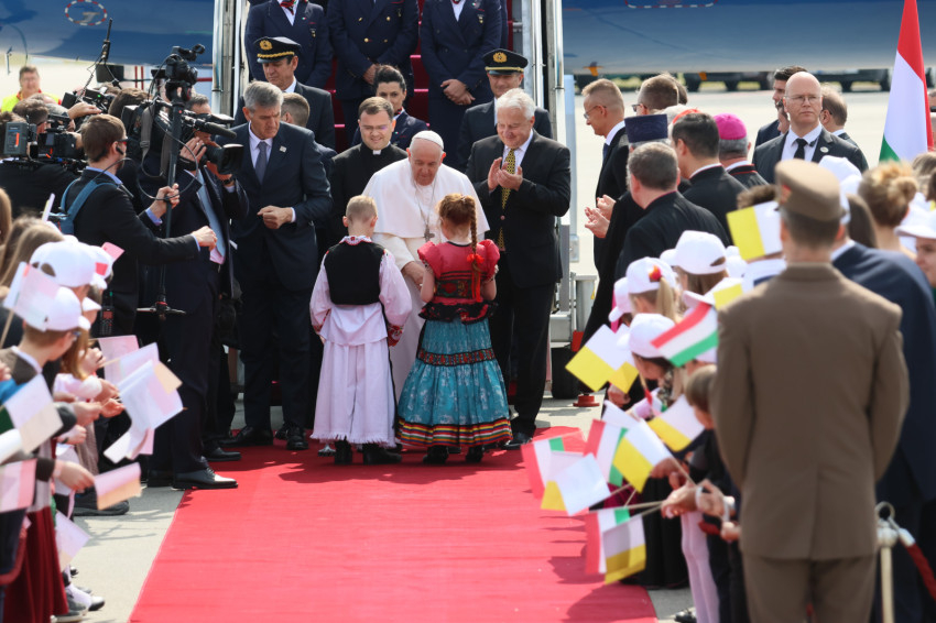 A repülőtéren a Szentatyát fogadta egyházi részről Erdő Péter bíboros, prímás; Michael Wallace Banach apostoli nuncius; Veres András győri megyéspüspök, a Magyar Katolikus Püspöki Konferencia (MKPK) elnöke, Kocsis Fülöp hajdúdorogi érsek-metropolita, valamint Tóth Tamás, az MKPK titkára, a Szentatya magyarországi apostoli látogatásának általános koordinátora; állami részről Semjén Zsolt miniszterelnök-helyettes, Szijjártó Péter külgazdasági és külügyminiszter, Rétvári Bence, a Belügyminisztérium parlamenti államtitkára; Soltész Miklós, a Miniszterelnökség egyházi és nemzetiségi kapcsolatokért felelős államtitkára és Azbej Tristan, a Miniszterelnökség üldözött keresztények megsegítéséért és a Hungary Helps Program megvalósításáért felelős államtitkára.