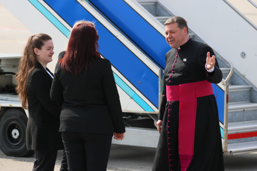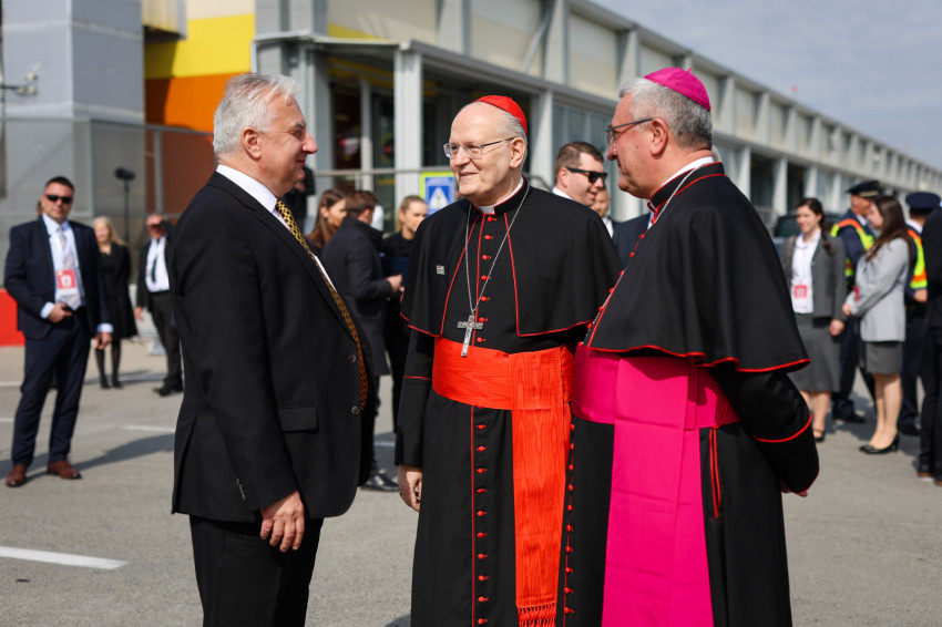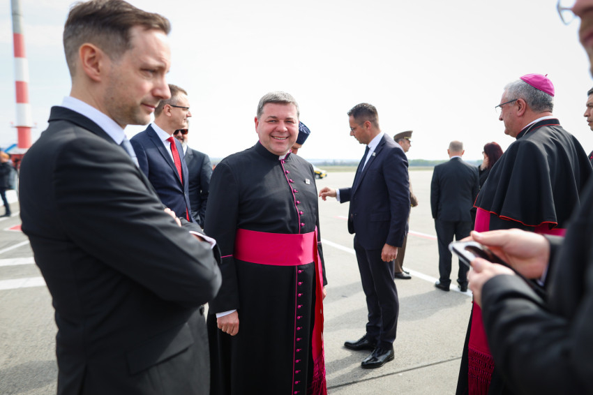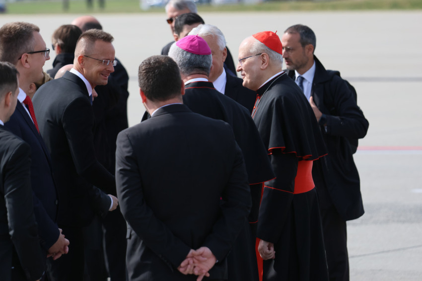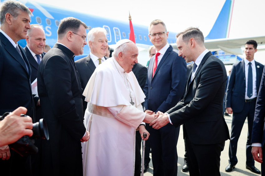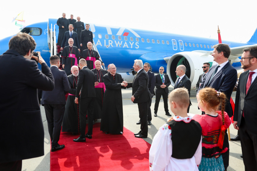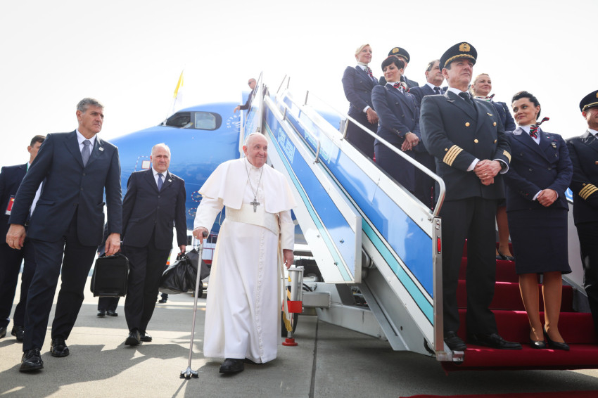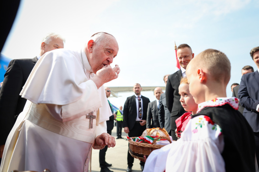 A repülőtéren a Szentatyát fogadta egyházi részről Erdő Péter bíboros, prímás; Michael Wallace Banach apostoli nuncius; Veres András győri megyéspüspök, a Magyar Katolikus Püspöki Konferencia (MKPK) elnöke, Kocsis Fülöp hajdúdorogi érsek-metropolita, valamint Tóth Tamás, az MKPK titkára, a Szentatya magyarországi apostoli látogatásának általános koordinátora; állami részről Semjén Zsolt miniszterelnök-helyettes, Szijjártó Péter külgazdasági és külügyminiszter, Rétvári Bence, a Belügyminisztérium parlamenti államtitkára; Soltész Miklós, a Miniszterelnökség egyházi és nemzetiségi kapcsolatokért felelős államtitkára és Azbej Tristan, a Miniszterelnökség üldözött keresztények megsegítéséért és a Hungary Helps Program megvalósításáért felelős államtitkára.