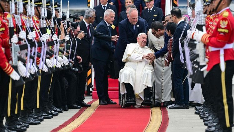 Ferenc pápa a tizenhárom órás repülőút végén megérkezett Indonéziába. Magyar idő szerint 6 óra 19 perckor, helyi idő szerint 11 óra 19 perckor landolt az ITA Airways járata a jakartai Soekarno-Hatta nemzetközi repülőtéren.