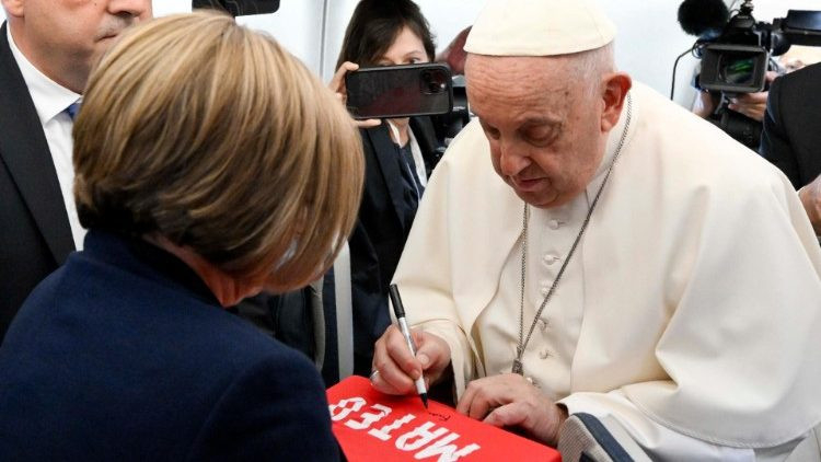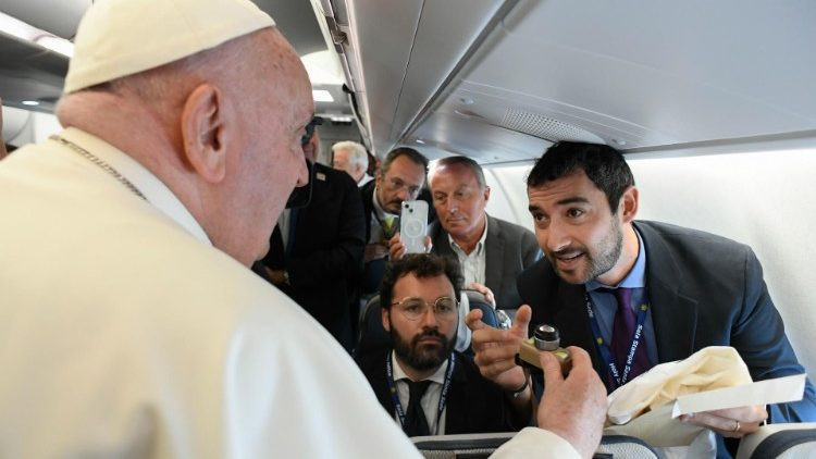 A repülőgép fedélzetén a Szentatya köszöntötte azt a nyolcvan újságírót, akik elkísérik ázsiai és óceániai apostoli útjára, megköszönte nekik, hogy csatlakoztak hozzá.