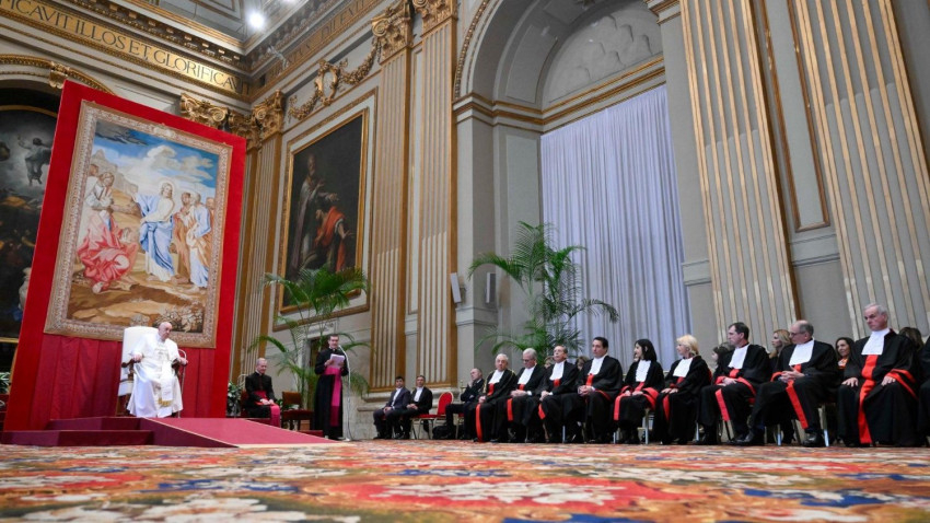 Ferenc pápa a bírósági évad megnyitása alkalmából elmondott beszédében az igazságszolgáltatáshoz szükséges bátorság erényére összpontosított. A Szentatya felidézte, hogy a keresztények számára ez az erény nem csupán a hősies emberek sajátos jellemzője, hanem „olyan tulajdonság, amely a Krisztussal való találkozás során adatik meg és erősödik meg, mint a Szentlélek cselekvésének gyümölcse, amelyet bárki megkaphat, ha imádkozik hozzá”. Ez különösen abban nyilvánul meg, hogy „türelemmel és kitartással cselekszünk, elutasítva azokat a belső és külső nyomásokat, amelyek hátráltatják a jó megvalósítását”.