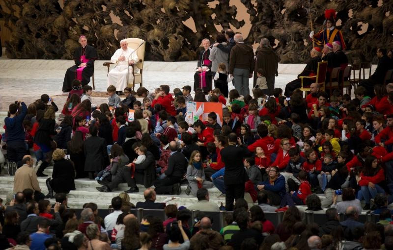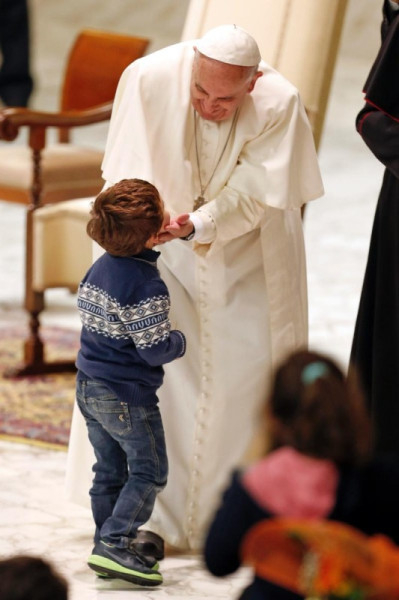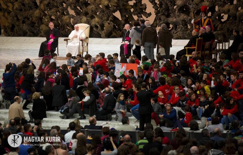 Szeretetetek legszebb gyümölcseit hoztátok ma el ide. Az anyaság és az apaság Isten ajándékai, de az ajándékot elfogadni, a társadalomban fölmutatni csodás szépségét – ez a ti feladatotok. Minden egyes gyermeketek egyedülálló teremtmény, akiből nem lesz újabb soha az emberiség történetében. Ha megértitek ezt, vagyis hogy mindnyájatokat Isten akarta, elámulhattok, hogy milyen nagy csoda is egy gyermek! Egy gyermek megváltoztatja az életet! Mi mindannyian láttuk – nők és férfiak –, hogy amikor egy gyermek érkezik közénk, az élet megváltozik, más lesz. Egy gyermek olyan csoda, amely megváltoztatja az életet! Ti, fiúk és lányok, éppen ezek vagytok: mindnyájatok a szeretet egyedülálló gyümölcse, szeretetből születtetek és nevelkedtek. Egyedülállóak vagytok, de nem vagytok egyedül! A tény, hogy vannak fiú- és leánytestvéreitek, javatokra válik: egy nagycsalád fiú- és leánygyermekei sokkal inkább képesek a testvéri közösségre már csecsemőkoruktól kezdve. Egy olyan világban, amelyet inkább az egoizmus jellemez, a nagycsalád az összetartozás és az osztozás iskolája; ez a hozzáállás később az egész társadalom javára lesz.
