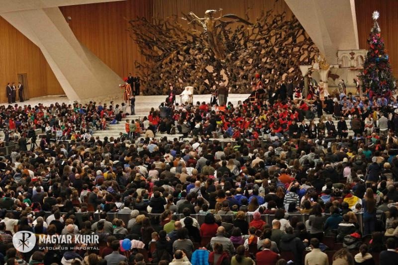 Kedves barátaim, kedves szülők, kedves gyermekek, kedves nagyszülők, boldog ünnepet kívánok nektek! Családjaitok minden tagja egyre inkább gyarapodjon Isten gyöngédségében és vigasztalásában! Szeretettel adom rátok áldásomat! Kérlek benneteket, továbbra is imádkozzatok értem, aki egy kicsit mindnyájatok nagypapája vagyok! Imádkozzatok értem! Köszönöm.