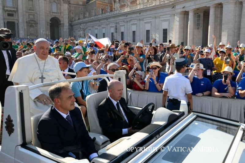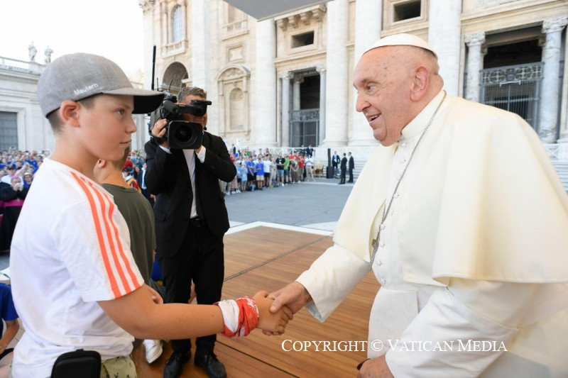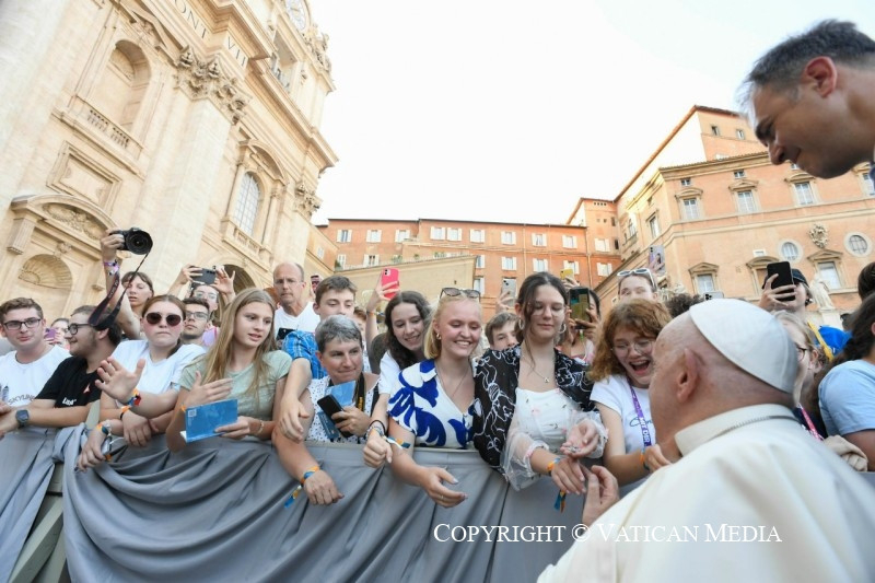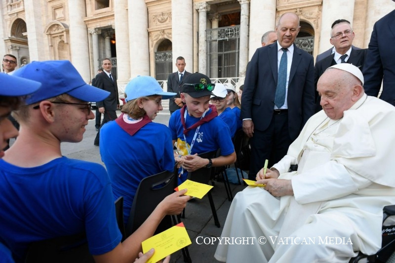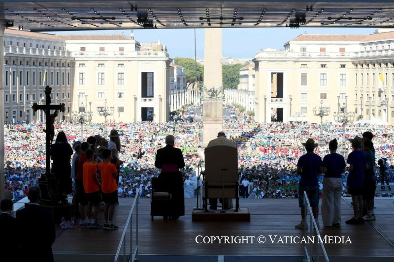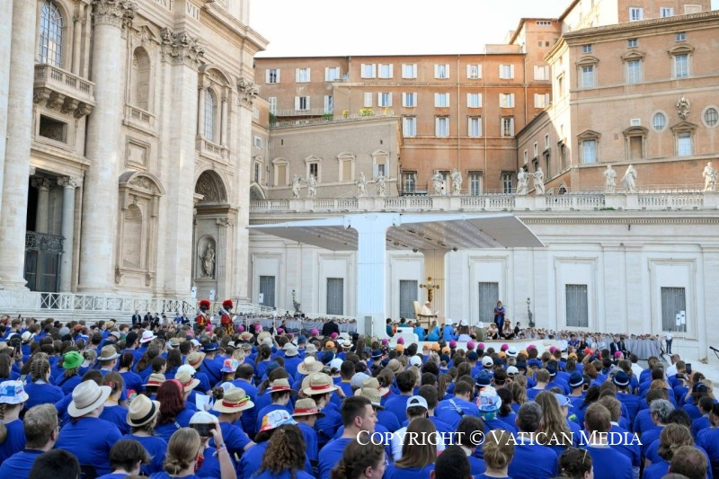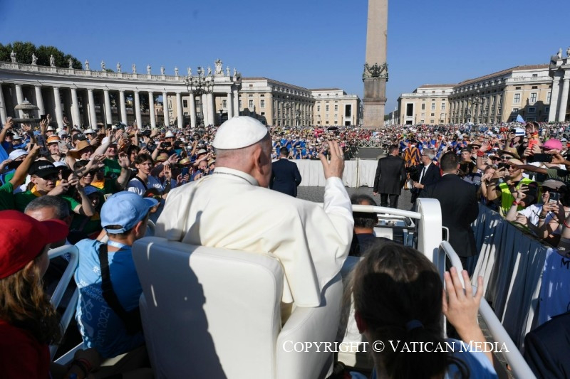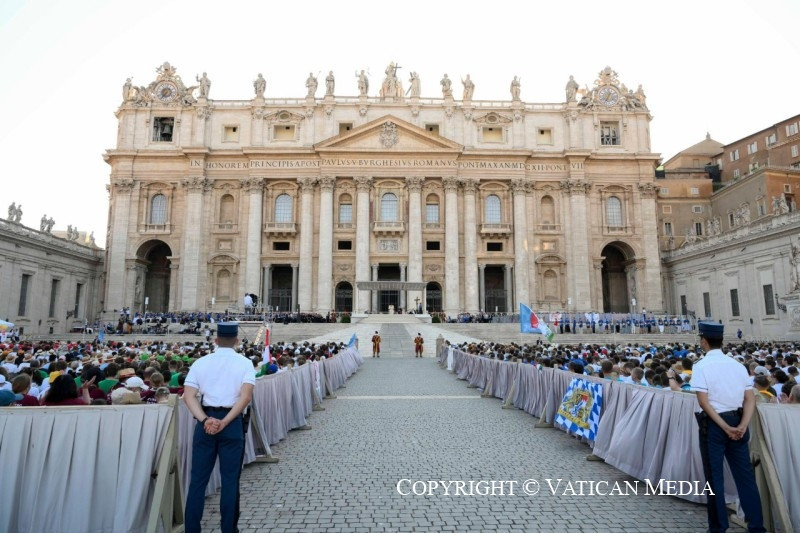 A Szent Péter tér mindig szép, de veletek még szebb! Nagyon köszönöm, hogy eljöttek Rómába; néhányatoknak talán ez az első alkalom. Isten hozott bennetek!