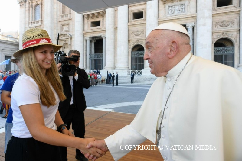 Danke, liebe junge Freunde! Und einen guten Weg zusammen mit Jesus! Danke, vielen Dank! [Köszönöm, fiatal barátaim! És jó utat Jézussal! Köszönöm, köszönöm szépen!]