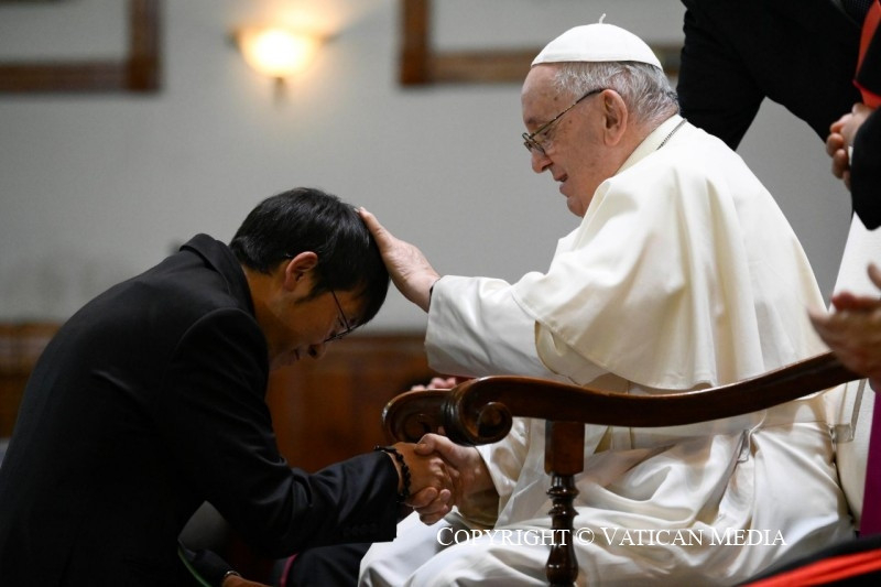 Köszönöm, Excellenciás Püspök Úr, a szavait, köszönöm Sage nővér, Peter Sanjaajav atya és Rufina tanúságtételét, és köszönöm mindnyájatoknak, hogy itt vagytok, és köszönöm a hiteteket! Örülök, hogy találkozhatom veletek! Az evangélium öröme az oka annak, hogy ti, megszentelt férfiak és nők a szerzetes életben és a felszentelt szolgálatban itt vagytok, s világi nővéreitekkel és testvéreitekkel együtt az Úrnak és az embereknek szentelitek magatokat. Áldom Istent ezért. Ezt egy szép dicsőítő imán, a harmincnegyedik zsoltáron keresztül teszem, belőle merítek ihletet, hogy néhány gondolatot megosszak veletek. Így biztat ez a zsoltár: „Ízleljétek és lássátok, milyen jó az Úr” (Zsolt 34, 9).
