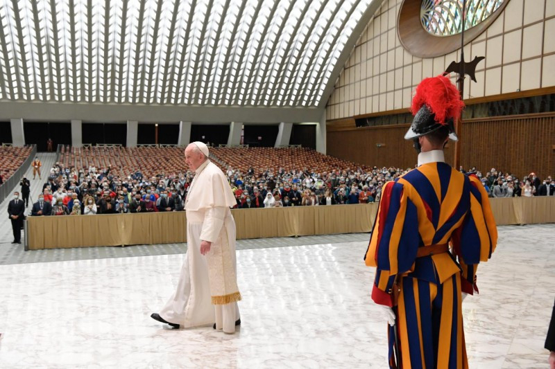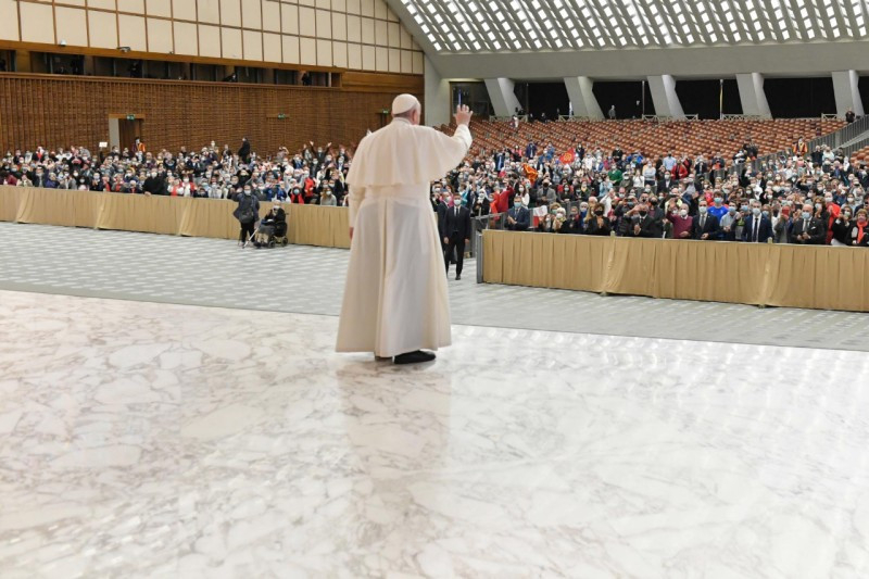 Ma a koronavírus miatt kicsit változtatnunk kell a kihallgatás lebonyolításán. Ti el vagytok választva, kicsit a védőmaszkkal is, én pedig kicsit távol vagyok tőletek. Nem tudom azt tenni, amit mindig is teszek, nem tudok közel kerülni hozzátok, mert valahányszor közelebb megyek, valamennyien összeseregletek, lecsökken a köztetek lévő távolság, és fennáll a fertőzés veszélye. Sajnálom, hogy így kell cselekednem, de a ti biztonságotokat szolgálja. Ahelyett, hogy közel mennék hozzátok, és kezet fognánk, távolról köszöntjük egymást, de tudnotok kell, hogy szívemmel közel vagyok hozzátok. Remélem, értitek, miért teszem ezt. Aztán amikor a felolvasók a bibliai szöveget olvasták, felfigyeltem arra a csecsemőre, aki sírt. És láttam, ahogy az édesanyja simogatta és megszoptatta a babát, és arra gondoltam: „Isten is így tesz velünk, mint ez az édesanya.” Milyen gyengéden próbálta ringatni és szoptatni a kisbabát. Gyönyörű képek ezek! És amikor templomban történik ez, amikor egy gyermek sír, akkor tudjuk, hogy jelen van egy édesanya gyengédsége, mint ma, jelen van egy édesanya gyengédsége, aki Isten irántunk tanúsított gyengédségének szimbóluma. Sose hallgattassátok el a templomban síró gyermeket, sose, mert az a hang Isten gyengédségét vonzza. Köszönöm a tanúságtételedet!