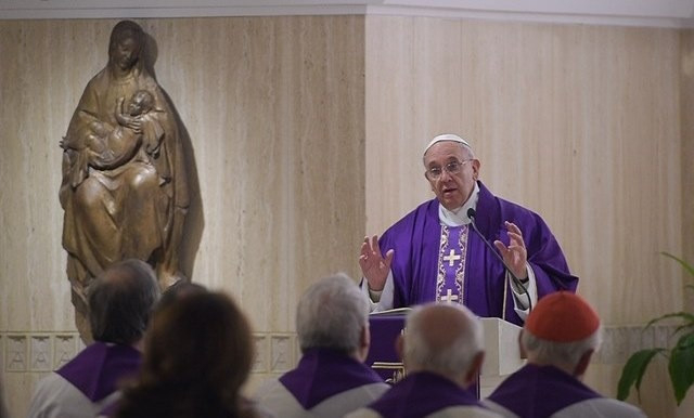 A nép panaszkodik az Úrnak, hogy miért nem fogadja el böjtjét. Ferenc pápa szentbeszédében az első olvasmány, Izajás próféta szövegéből indult ki (Iz 58,1–9a). Kiemelte, hogy különbséget kell tenni a „formális” és a valós böjt között. Az Úrnak az nem jelent böjtöt, ha nem eszünk húst, viszont vitatkozunk a dolgozóinkkal, és kihasználjuk őket. Jézus ezért ítélte el a farizeusokat, mert számos külsődleges vallási előírást megtartottak, de a szív igazsága nélkül.