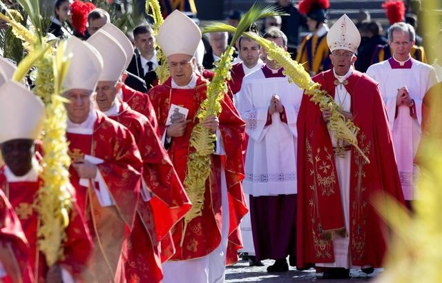 A szertartás a tér közepén álló obeliszk tövénél kezdődött, az Úr jeruzsálemi bevonulásának emlékére. Az ünnep olasz neve: Domenica delle Palme, vagyis pálmavasárnap, mert a zöld pálmaág a győzelem és megdicsőülés jelképe. Ugyanakkor a szenvedés és a halál ünneplése is ez a nap, amelynek látható jele a vértanúságra emlékeztető piros miseruha és a szentmise során felhangzó passió, Urunk szenvedéstörténete.