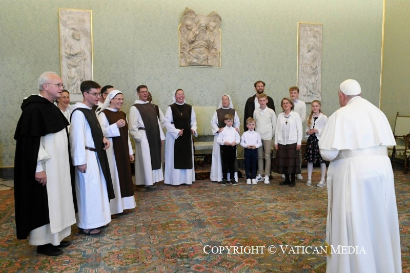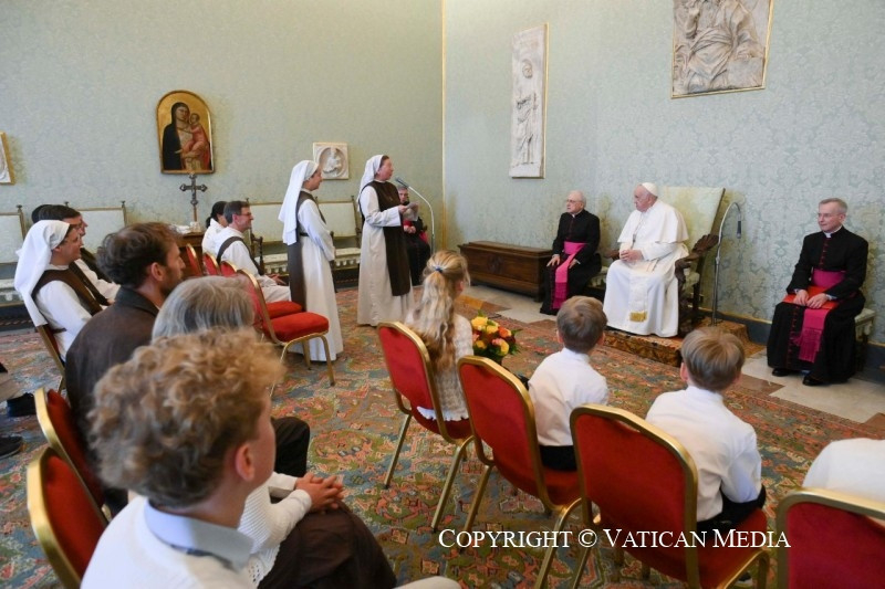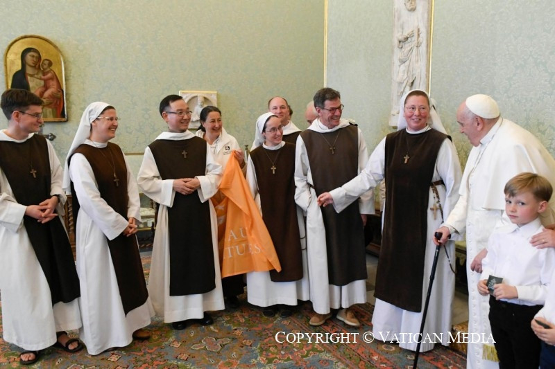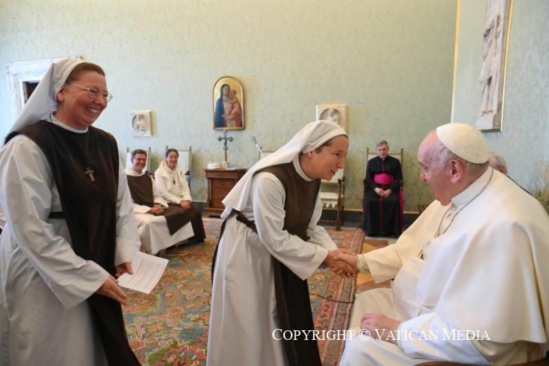 Kedves testvéreim és nővéreim, hálás vagyok azért az elkötelezettségért, amelyet a megszentelt életben tanúsítotok, és azért a szolgálatért, amelyet az Egyháznak és a világnak nyújtotok. Közösségetek, mely a szemlélődés, az imádság és a misszió lelkiségén alapul, értékes hozzájárulást nyújt a vallásközi párbeszédhez, a béke előmozdításához és az emberi jogok védelméhez, és tanúságtételetek sokakat inspirál.