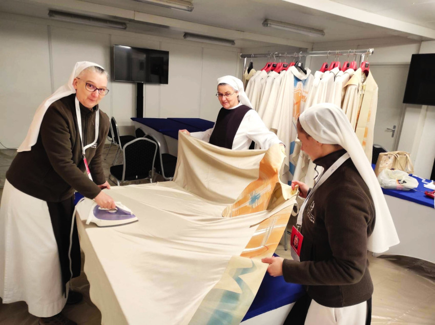 – A Kossuth téri szentmise előkészületeiben is részt vett. Széles körben elterjedt az a fotó az interneten, ahogyan Krisztina és Margit nővérrel együtt vasalják a Szentatya palástját, számos orgánum átvette. Hogyan élte meg a készülődést, mi volt a feladata?