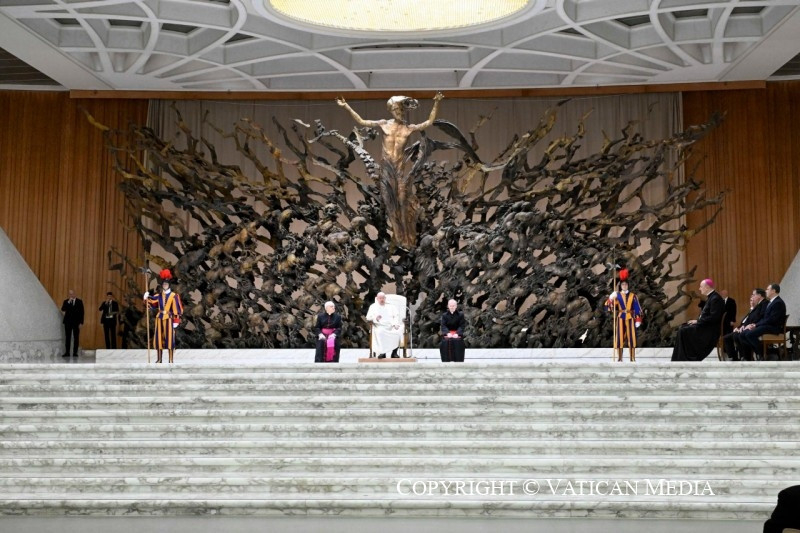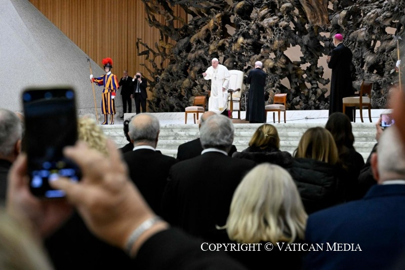 A mai találkozó egyben a jubileumi út elejéhez is kapcsolódik: a szent év néhány nappal ezelőtt kezdődött, pontosan annak az eseménynek az ünneplésével, amelyben Isten Fiának megtestesülésével a remény belépett a világba. A jubileumnak sok mondanivalója van az oktatás és az iskola világának, ugyanis a „remény zarándokai” mindazok az emberek, akik életük értelmét keresik, és azok is, akik segítenek a legfiatalabbaknak ezen az úton járni. A jó pedagógus a remény embere, mert bizalommal és türelemmel az emberi növekedés projektjének szenteli magát.