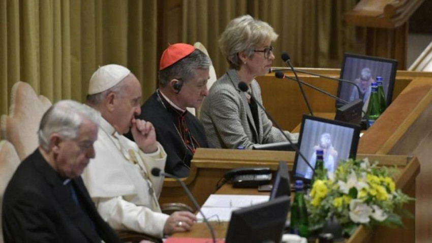 Dr. Ghisoni gondolati logikája épp egy anya logikája volt, és annak elmondásával zárult, hogy mi történik, amikor egy nő világra hozza gyermekét. Ez az Egyház női misztériuma, az Egyházé, mely feleség és anya. Nem az a feladatunk, hogy több funkciót adjunk a nőknek az Egyházban – persze ez is jó, de pusztán ezzel nem oldjuk meg a problémát –, hanem integrálnunk kell a nőt mint az Egyház képét gondolkodásunkba. Az Egyházról a nőiség kategóriáival is kell gondolkodnunk. Köszönöm az Ön tanúságtételét!