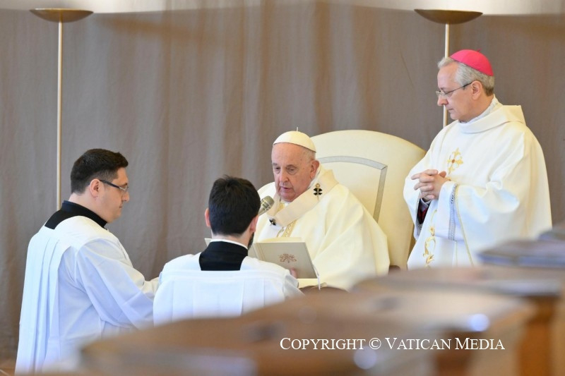 Most ugyanazt fogjuk tenni, amit Jézus tett: lábat mosunk. Ez a gesztus a szolgálatra szóló meghívottságunkra hívja fel a figyelmet. Kérjük az Urat, segítsen, hogy mindannyian növekedjünk a szolgálat hivatásában.