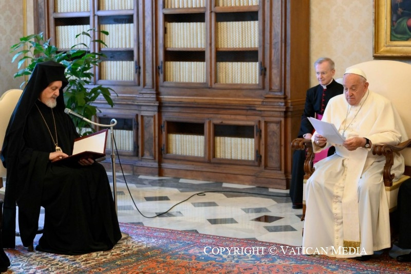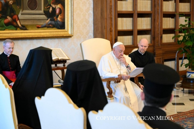 A küldöttséghez intézett beszédében a Szentatya üdvözölte a lehetőséget, hogy „megtapasztalhatják a testvéri találkozás örömét”, és tanúságot tehetnek mind a két egyházat összekötő „mély kötelékről”, mind a „közös előrehaladás iránti szilárd elhatározásról”, hogy helyreállítsák az egységet egymás között.