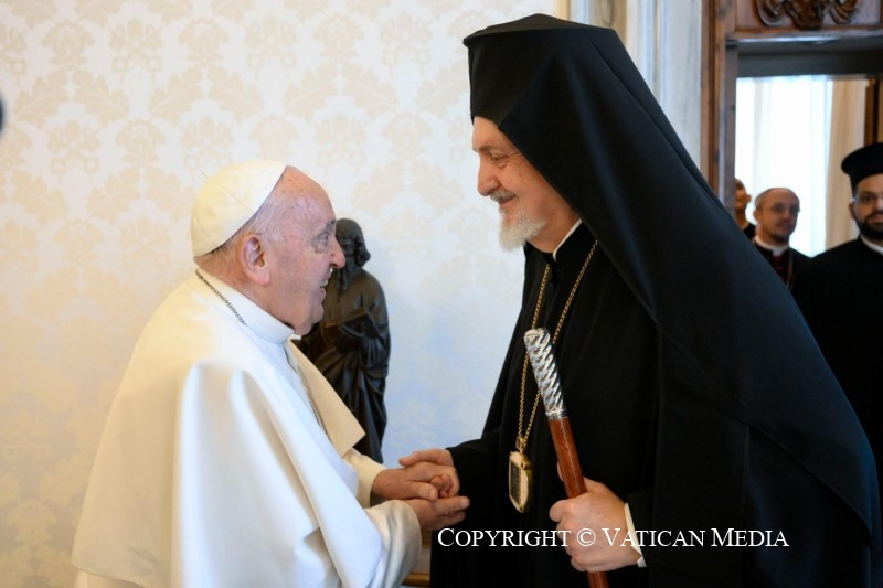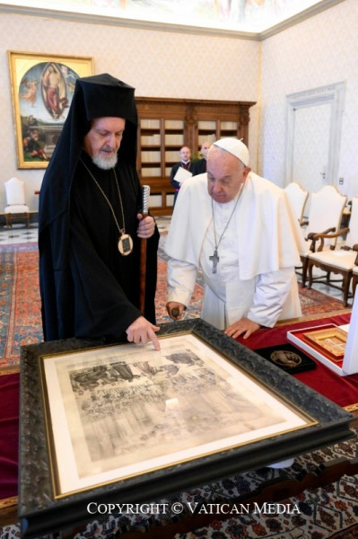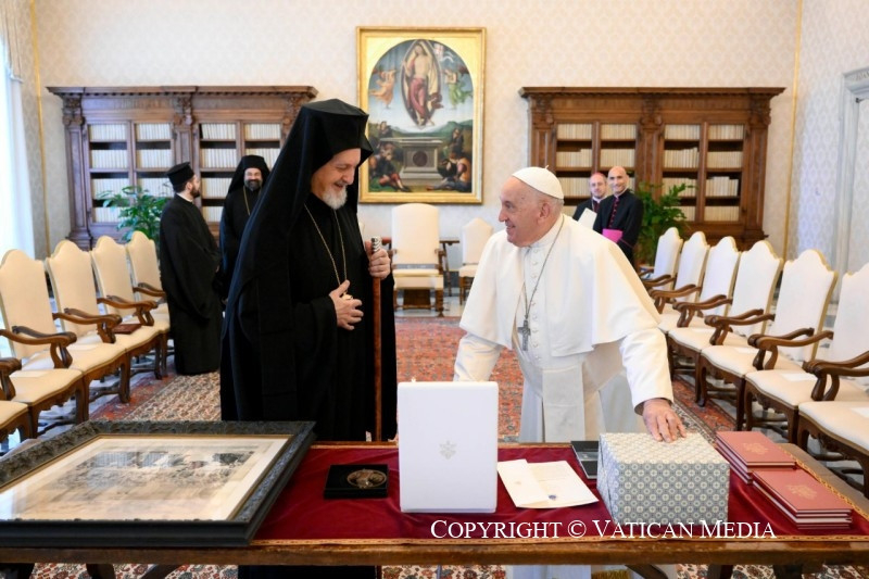 Ferenc pápa külön kiemelte a jelenlegi konstantinápolyi ökumenikus pátriárkával, I. Bartholomaiosszal (Bertalannal) való számos találkozását, különösen a 2014-es jeruzsálemi találkozást Szent VI. Pál pápa és I. Athenagorasz történelmi találkozásának 50. évfordulója alkalmából. Hangsúlyozva az elkötelezettséget arra, hogy „együtt járják az utat” a teljes egység felé, a pápa megerősítette, „hogy