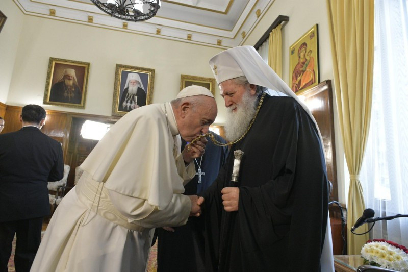 Ferenc pápa és Neofit pátriárka találkozója 2019. május 5-én Szófiában