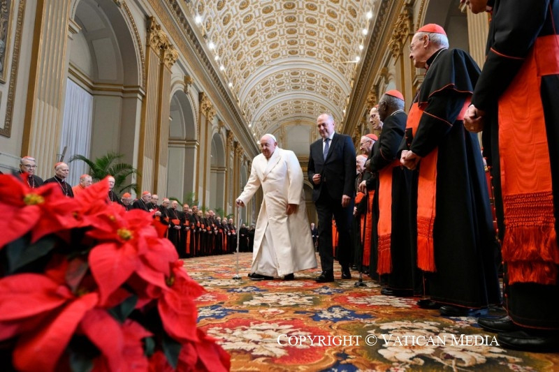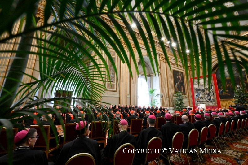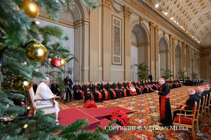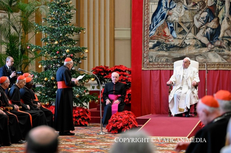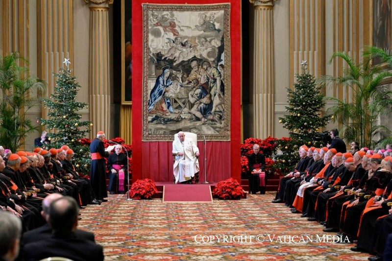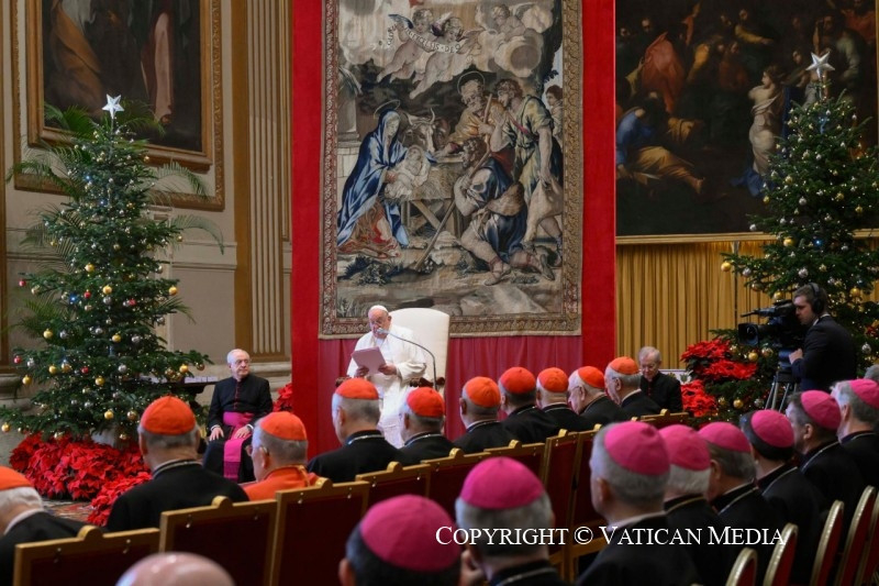 A Római Kúria sok, többé-kevésbé összetett vagy nagyszámú munkaközösségből áll. Amikor egy olyan gondolatébresztőn tűnődtem, amely a kúrián és annak egyes szervezeti egységein belüli közösségi életnek hasznára válna, idén egy olyan szempontot választottam, amely jól kapcsolódik a megtestesülés misztériumához, és hamarosan látni is fogjátok, miért.