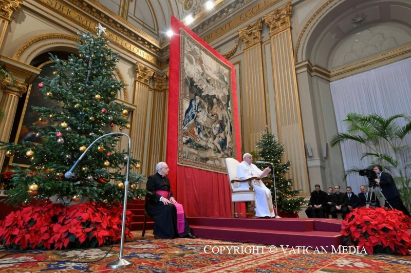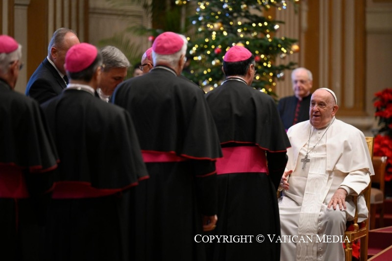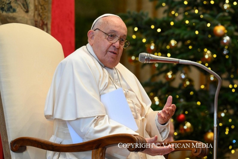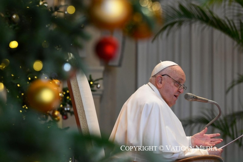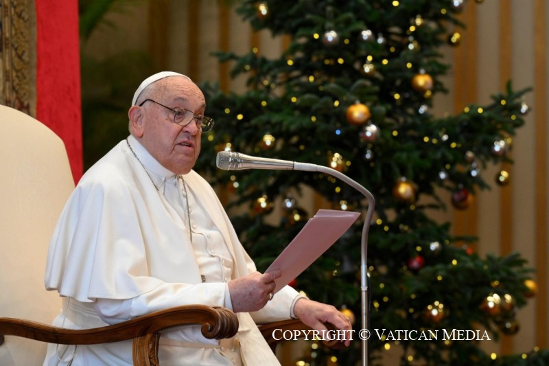 Kedves testvéreim, jó arra gondolni, hogy a mindennapi munkával – különösen a legrejtettebbel – mindannyian hozzájárulhatunk ahhoz, hogy Isten áldását a világba vigyük. Ám ebben hitelesnek kell lennünk: nem tehetjük meg, hogy áldásokat írunk, aztán pedig rosszat mondunk a testvérünkről! Ez elrontja az áldást. Ez tehát az én jókívánságom: az Úr, aki alázatban született értünk, segítsen bennünket, hogy mindig jót mondó, áldó emberek legyünk!