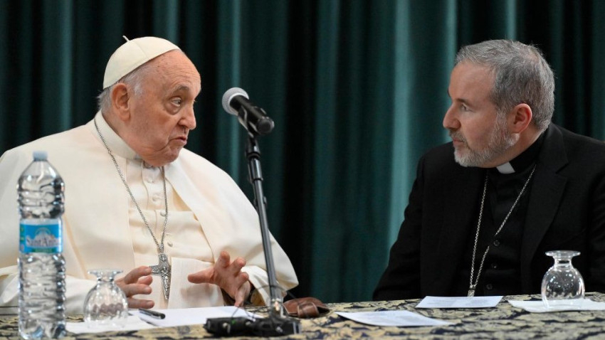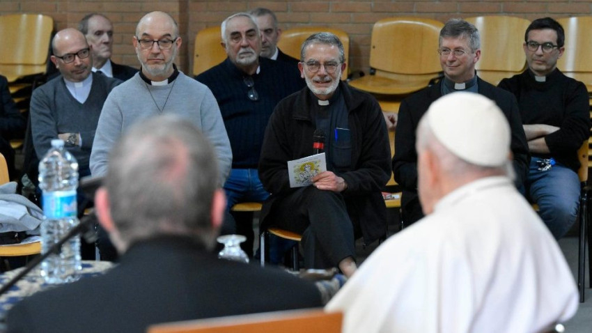 A prefektúra 35 papjával és diakónusaival – hasonlóan az előző plébániai látogatásokhoz – körülbelül másfél órán át beszélgetett Ferenc pápa, zárt ajtók mögött. Imádság és a Szentlélek hívása után válaszolt a főként lelkipásztori jellegű kérdésekre.
