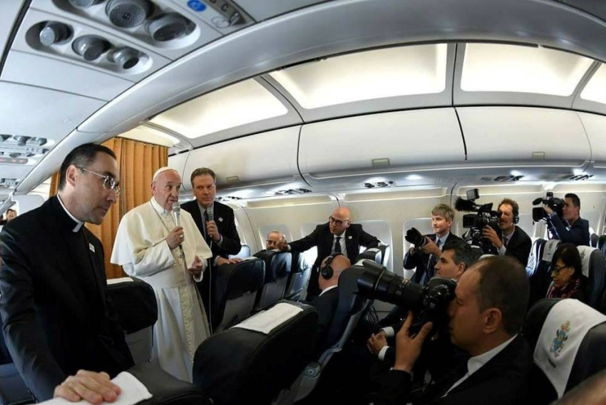 – Értem. Létezik egyfajta „populizmus” – idézőjelbe téve, mert, miként tudjátok, ezt a szót nekem itt, Európában újra kellett tanulnom, mivel Latin-Amerikában más jelentése van. Egyrészt ott van Európa problémája, és ott van az Európai Unió problémája. Azt, amit Európáról mondtam, nem ismétlem meg itt, négyszer is beszéltem már ugyanis róla: kétszer Strasbourgban, egyszer a Nagy Károly-díj átvételekor, és a [római szerződések] hatvanadik évfordulójára történő megemlékezés kezdetén. Ezekben a beszédekben minden megtalálható, amit Európáról mondtam. Minden ország szabad abban, hogy meghozza azokat a döntéseket, amelyeket ebből a szempontból jónak tart; én nem tudom megítélni, hogy egy döntést ebből vagy abból az okból hoznak-e meg, mert nem ismerem a belpolitikát. Igaz, hogy Európát ma a felbomlás veszélye fenyegeti, ez igaz. Erről tapintatosan beszéltem Strasbourgban, erősebben szóltam róla a Nagy Károly-díj átvételekor, legutóbb pedig minden árnyaltság nélkül. Egyedül erről kell elmélkednünk: Európáról, mely az Atlanti-óceántól az Urál hegységig tart… Létezik egy probléma, amely megijeszti Európát, és valószínűleg táplálja a populizmusokat: a migráció problémája. Ez igaz. De ne felejtsük el, hogy Európát migránsok hozták létre: századokon át érkeztek ide migránsok… Ezek mi vagyunk! De olyan probléma ez, amelyet alaposan tanulmányozni kell; és tiszteletben kell tartani a véleményeket, a politikai megvitatás tisztességes véleményeit, a nagybetűs Politikáét, nem az ország kisbetűs politikájáét, amely végül elbukik. Franciaország vonatkozásában: megmondom az igazságot, én nem értem a francia belpolitikát. Jó kapcsolatokra törekedtem, a mostani elnökkel is, akivel egyszer volt egy konfliktusom, de aztán világosan beszélhettem a dolgokról, tiszteletben tartva az ő véleményét… A két politikai jelöltnek [Le Pen és Macron] nem ismerem a történetét, nem tudom, honnan jönnek… Igen, tudom, hogy egyik a szélsőjobb képviselője, de a másikról tényleg nem tudom, honnan jön. Ezért nem tudok világos véleményt megfogalmazni Franciaországról. De szóba kerültek a katolikusok: itt, Egyiptomban, az egyik gyűlésen, miközben üdvözöltem az embereket, valaki megkérdezte tőlem: „Miért nem gondol nagyszabású politikára?” – „Ezen mit ért?” És úgy mondta, mintha segítséget kérne: „Pártot alapítani a katolikusoknak.” Jó szándékú ez az ember, de a múlt században él! A populizmusokról: kapcsolatban állnak a migrációval, de ez nem tartozik utunk témájához. Ha lesz idő, visszatérhetek rá. Ha lesz idő, visszatérek rá.