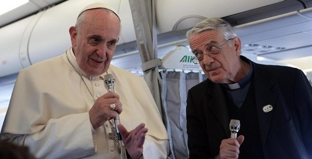 Az újságírók az Iszlám Államról és a terroristákkal folytatott párbeszédről is kérdezték Ferenc pápát a Strasbourgból Rómába tartó repülőgépen. A Szentatya a párbeszéd lehetőségéről ezt mondta: „Én soha nem tekintek semmit elveszettnek. Soha. Talán nem lehet párbeszédet folytatni, de soha ne zárjuk be az ajtót. Ez nehéz, majdhogynem lehetetlen, de az ajtó legyen mindig nyitva.”