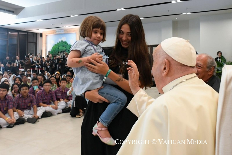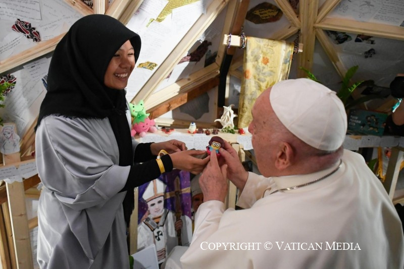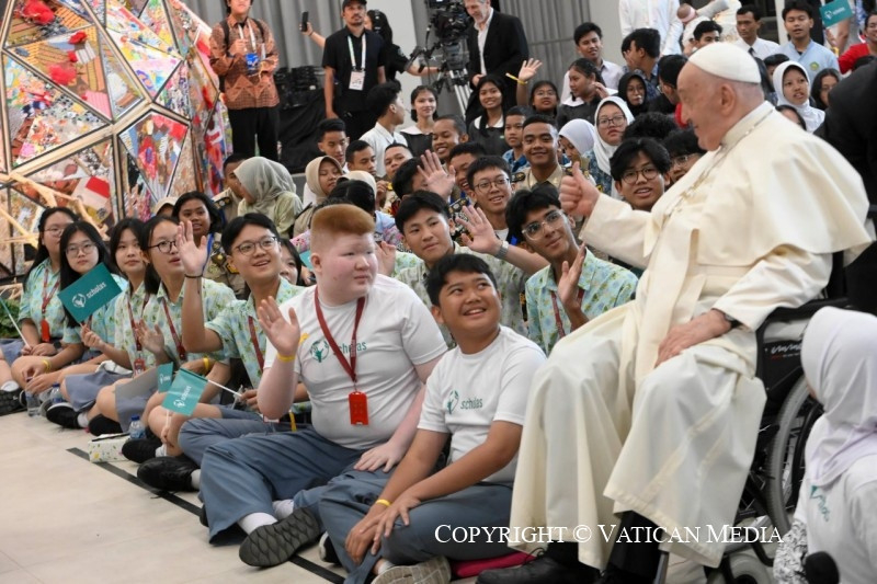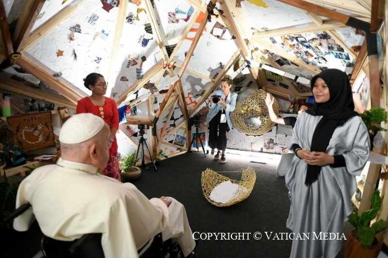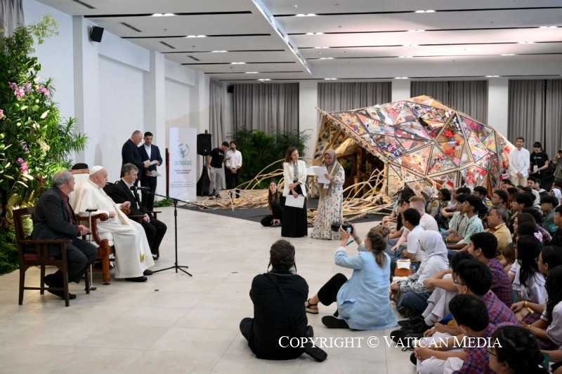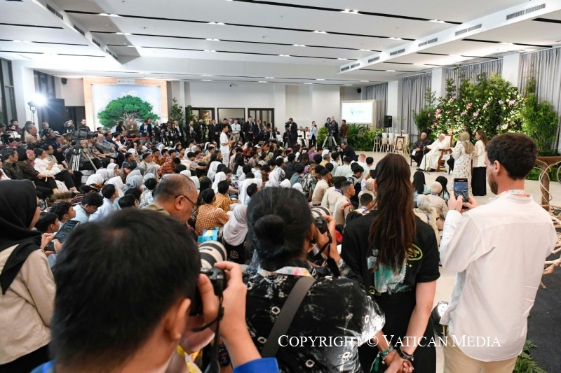 Az Indonéziában is jelen levő mozgalom kétszáz fiatalja köszöntötte Ferenc pápát a Grha Pemuda ifjúsági házban. A fiatalok különböző szigetekről, iskolákból érkeztek és különböző vallások követői, így hűen tükrözték a pápa és az indonéz nép számára is oly fontos sokszínűségben rejlő egységet.