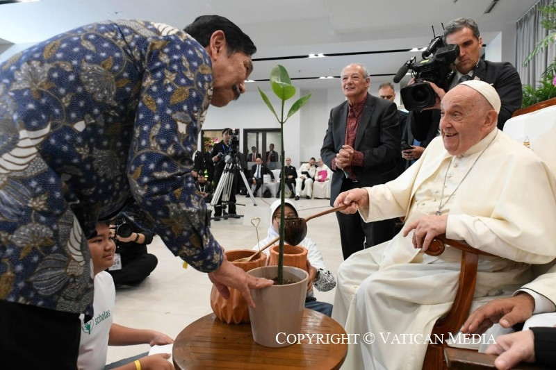 Végül a pápa jelképesen elültetett egy mangrovefát e történelmi találkozó emlékére, valamint egy környezetvédelmet és fenntartható fejlődést elősegítő projekt elindításaként.