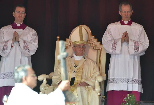 Mindenekelőtt kiváló pap volt. Sokan vannak itt közöttünk papok, szerzetesek és szerzetesnők, akik – miként Vaz Szent József – életüket az Isten evangéliuma és a felebarát szolgálatára szentelték. Arra bátorítalak benneteket, hogy tekintsetek Vaz Szent Józsefre, mint egy biztos vezetőre. Ő arra tanít minket, hogy menjünk ki a perifériákra, hogy Jézus Krisztust mindenütt megismerjék és szeressék. Ő példája az evangéliumért vállalt türelmes szenvedésnek, az elöljárók iránti engedelmességnek és az Isten egyháza szeretettel teli gondozásának (vö. ApCsel 20,28). Hozzánk hasonlóan egy gyors és mélyreható átalakulás korszakában élt; a katolikusok kisebbségben voltak, és gyakran egymást közt megosztva, belső viszályok és kívülről jövő üldöztetés közepette. Ennek ellenére, minthogy az imádságban folyamatosan egyesült a feltámadt Úrral, olyan helyzetben volt, hogy az egész lakosság számára az Isten irgalmas és kiengesztelő szeretetének a jelképe lett.