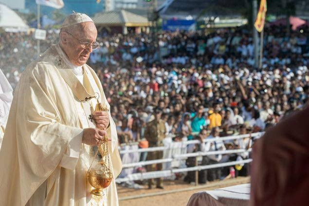 Ferenc pápa Srí Lanka-i apostoli látogatásának második napján helyi idő szerint reggel fél 9-től közel egymillió hívő részvételével szentmisét mutatott be a Colombo pénzügyi negyedének szívében fekvő Galle Face Green parkban, azon a helyen, ahol Szent II. János Pál éppen húsz évvel ezelőtt a boldogok sorába emelte a Ceylon apostolaként tisztelt Vaz Józsefet. A szertartás során Ferenc pápa szentté avatta a misszionárius papot. Ő Srí Lanka első szentje, aki a 17. század végén evangelizált a szigeten. Beszédében a pápa az új szent papi, misszionáriusi és a megosztottságokat legyőző lelkületét méltatta.