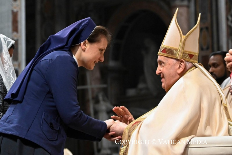 Testvéreim, ezek a kérdések nekünk, valamennyiünknek, közösségeinknek, az Egyháznak szólnak. Engedjük, hogy elvegyék nyugodtságunkat, engedjük, hogy megmozdítson bennünket a Lélek, mint Simeont és Annát! Ha a várakozást hozzájuk hasonlóan a lelki élet őrzésével és az evangéliumi életmóddal összhangban éljük meg, akkor mi is karunkba vehetjük majd Jézust, az élet világosságát és reményét.