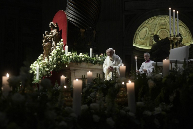 „Szemem meglátta üdvösséged” (Lk 2,30). Ezek Simeon szavai, akit az evangélium egyszerű emberként mutat be: „igaz és istenfélő ember” – mondja a szöveg (Lk 2,25). De az emberek közül, akik azon a napon a templomban voltak, csak ő látta meg Jézusban az Üdvözítőt. Mit látott? Egy gyermeket: egy kicsiny, törékeny és egyszerű gyermeket. De ott meglátta az üdvösséget, mert a Szentlélek felismerteti vele abban a csöppnyi csecsemőben „az Úr Felkentjét” (Lk 2,26). Karjába véve megérezte hitében, hogy benne Isten beteljesítette ígéreteit. És akkor ő, Simeon, elmehetett békében: látta a kegyelmet, amely többet ér, mint az élet (vö. Zsolt 63,4), semmi mást nem várt.