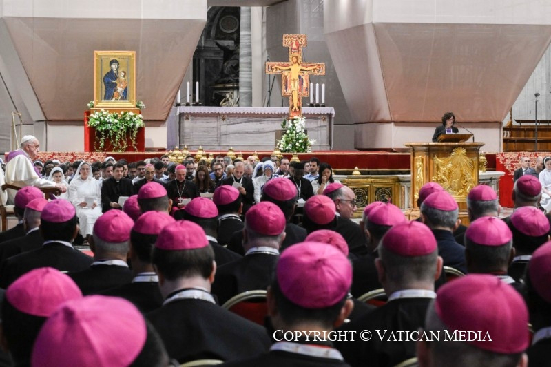 Három érintett személy megrendítő tanúságtétele is elhangzott a bazilikában: egy pap által elkövetett erőszak áldozatának, egy hajótörést szenvedőnek és egy a szíriai háborút túlélőnek a vallomása.