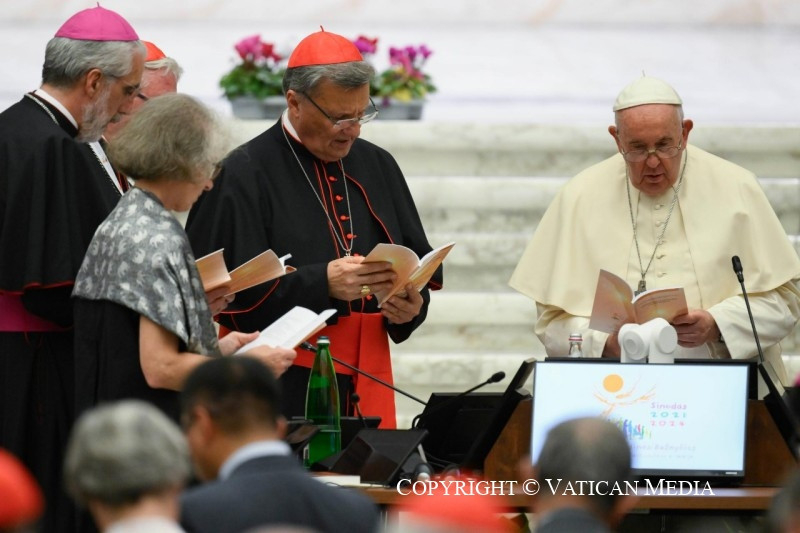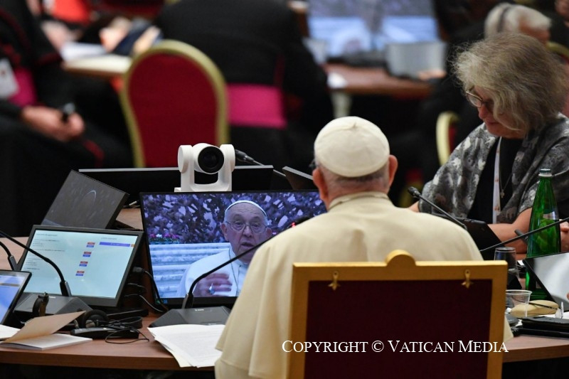 Amikor a szinódus intézménye létesítésének ötvenedik évfordulója volt, a teológusok elkészítettek egy levelet, amelyet aláírtam: egy szép lépés volt előre. De most nekünk kell megtalálnunk a magyarázatot ezen az úton. A szinódus főszereplői nem mi vagyunk, hanem a Szentlélek, és ha teret engedünk a Szentléleknek, a szinódus jól fog sikerülni. Ezeket a Szent Baziltól származó szövegeket különböző nyelveken kaptátok meg: angolul, franciául, portugálul és spanyolul, hogy kézben tarthassátok. Nem idézem most ezeket a szövegeket, de kérem, hogy később gondolkodjatok és elmélkedjetek róluk.