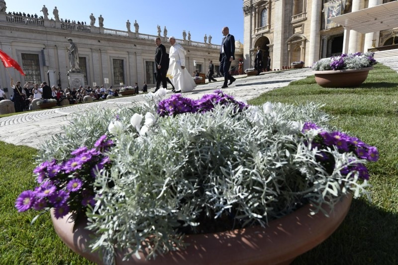 Adja meg nekünk a Lélek annak kegyelmét, hogy az álmoknak és a reménynek az ajándékával felkent szinódusi atyák legyünk, hogy mi is fel tudjuk kenni fiataljainkat a prófétálás és a távolra látás képességével! Adja meg nekünk annak kegyelmét, hogy tevékeny, élő, hatékony emlékezet legyünk, mely nemzedékről nemzedékre nem engedi, hogy elfojtsák vagy elűzzék a csapást és vészt jósló próféták, sem önnön korlátai, hibái és bűnei, hanem képes teret találni a szívek lángra gyújtására és a Lélek útjainak felismerésére! A Lélek hangjára figyelő, tanulékony hallgatás magatartásával gyűltünk most össze a világ minden tájáról. Ma, első alkalommal itt van velünk két püspöktestvérünk is, a kontinentális Kínából. Fogadjuk őket meleg szeretettel: jelenlétüknek köszönhetően a püspököknek Péter utódával való egysége most még láthatóbb. [Tapsolnak.]