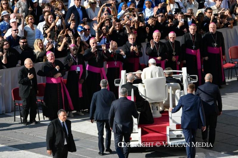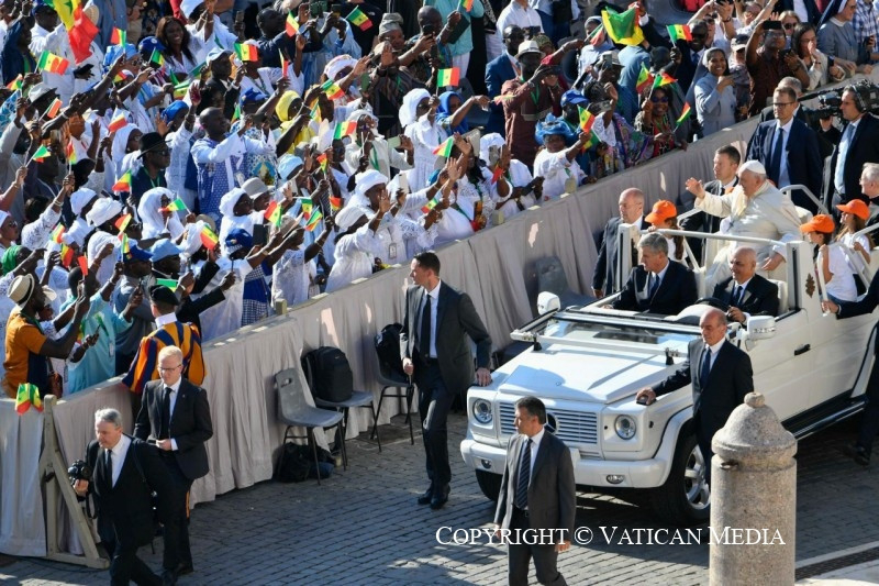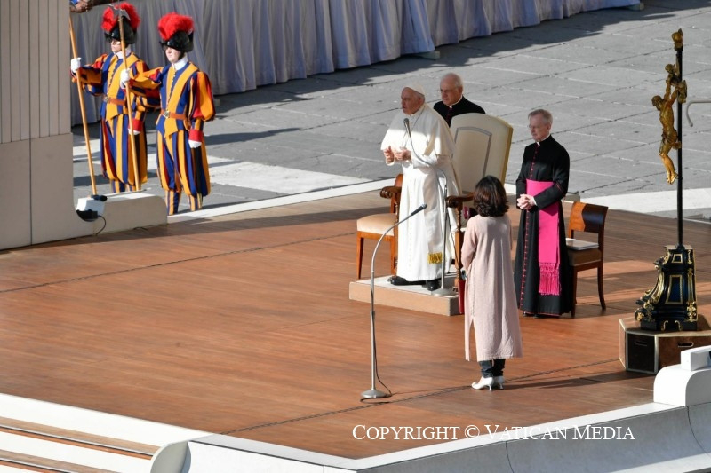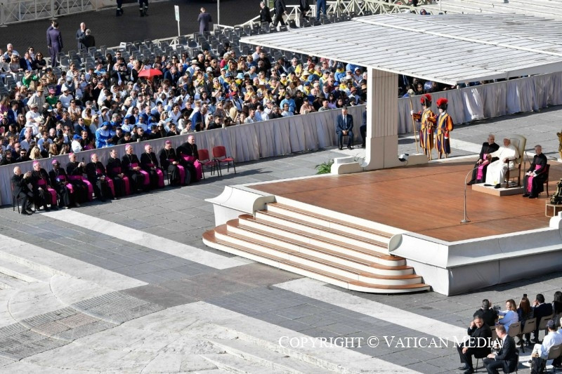 Hétfőn tértem vissza Mongóliából. Szeretném kifejezni hálámat mindazoknak, akik imáikkal kísérték látogatásomat, és szeretnék újfent köszönetet mondani az állami vezetőknek, akik ünnepélyesen fogadtak: különösen Khürelsükh miniszterelnök úrnak, valamint Enkhbayar korábbi elnök úrnak, aki hivatalosan meghívott az ország meglátogatására. Örömmel gondolok vissza a helyi egyházra és a mongol népre: nemes és bölcs nép, mely nagy szívélyességet és szeretetet tanúsított irántam. Ma ennek az útnak a szívébe szeretnélek vinni benneteket.