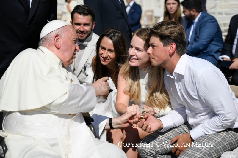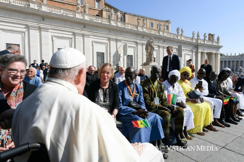 Ennek a közösségnek megható története van. Isten kegyelméből és néhány misszionárius apostoli buzgóságából született. Ebben az időszakban épp az apostoli buzgóságról elmélkedünk [a szerdai katekézisek során]. Ezek a misszionáriusok az evangélium iránti szenvedélyes szeretettől vezérelve körülbelül harminc évvel ezelőtt elmentek abba az országba, melyet nem ismertek. Megtanulták a nyelvét – ami nem könnyű –, és bár különböző nemzetekből érkeztek, egységes és valóban katolikus közösséget hoztak létre. Ez ugyanis a jelentése a „katolikus” szónak, azt jelenti, hogy „egyetemes”. De ez nem egyformává tevő egyetemesség, hanem olyan, amely inkulturál. Inkulturáló egyetemesség.