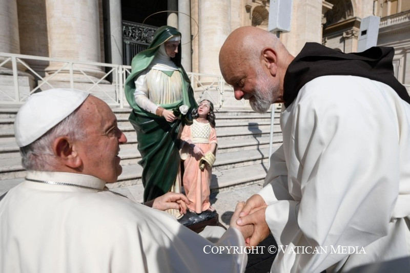 Így él tehát az Egyház: tanúságot tesz Jézus szeretetéről szelíden, inkább az élettel, mint szavakkal, igazi értékeinek – az Úr szolgálatának és testvérei szolgálatának – örülő boldogsággal.