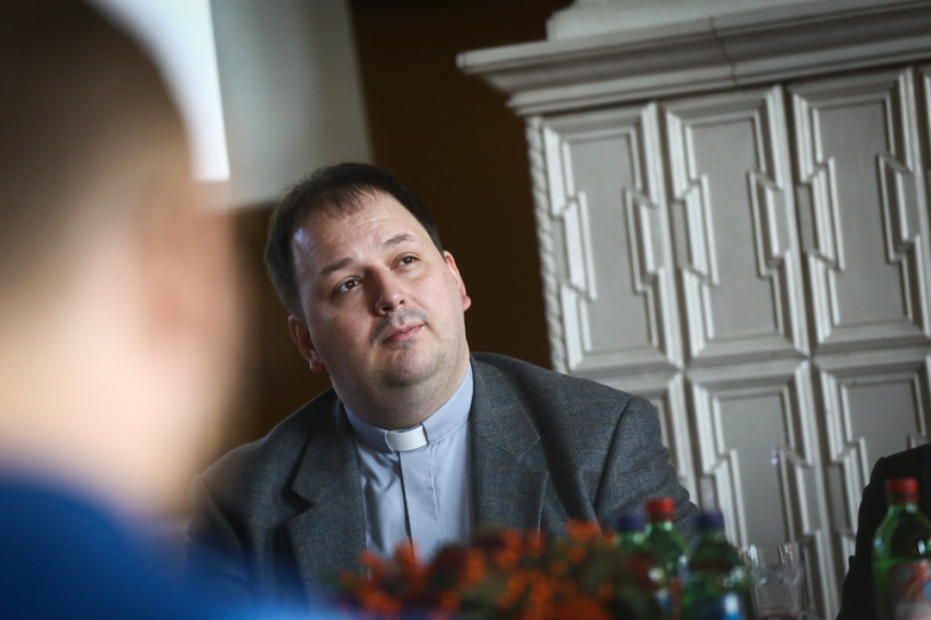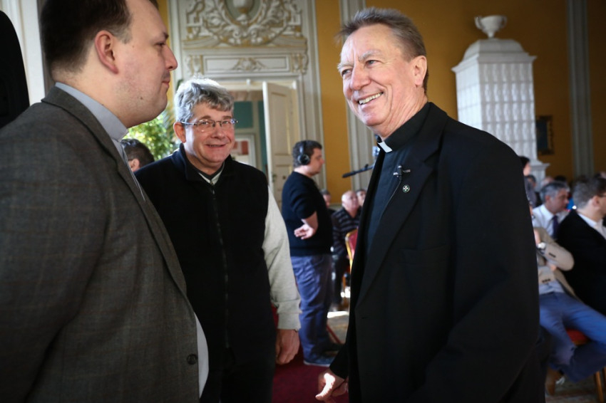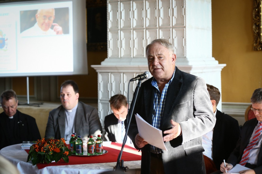 Hegyi Gyula újságíró köszöntőjében elmondta, hogy a Ferenc pápa tanítása iránti tisztelet hozta össze egymással az előadókat: püspököt, teológust, hívő és nem hívő világi gondolkodókat.