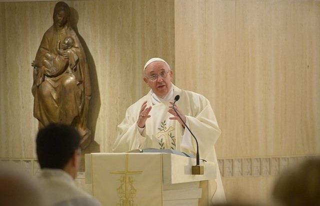 Jézus ezt mondja Mártának a mai evangéliumban (Lk 10,38–42): „Sok mindenre gondod van, és sok mindennel törődsz, pedig csak egy a szükséges. Mária a jobbik részt választotta.” Ez azt jelenti, hogy hallgatni kell az Úrra, és emlékeznünk kell. Nem lehet úgy imádkozni, mintha nem lenne történetünk. Mindnyájunknak van története. És ezzel a történettel a szívünkben menjünk imádkozni, mint az evangéliumi szakasz Máriája! Hányszor elfelejtjük ezt a történetet, mint Márta, akinek figyelmét elvonta a házi munka, a hétköznapok gondja – figyelmeztetett Ferenc pápa.