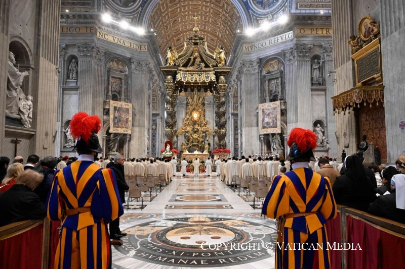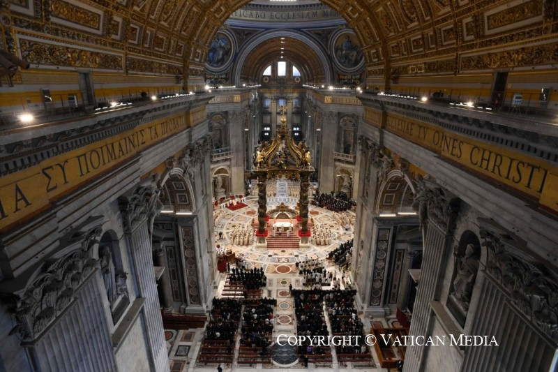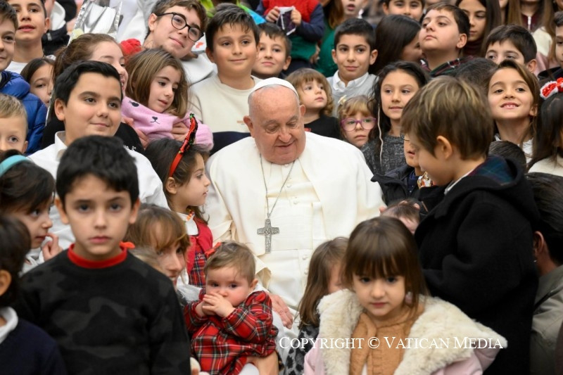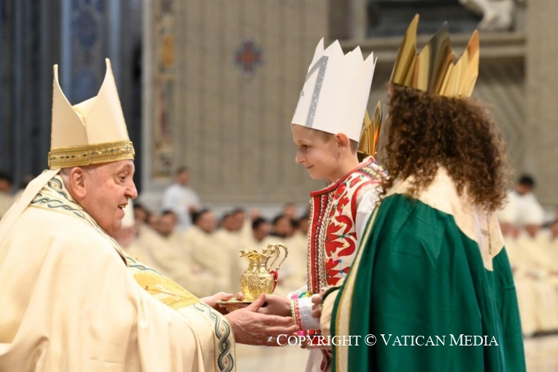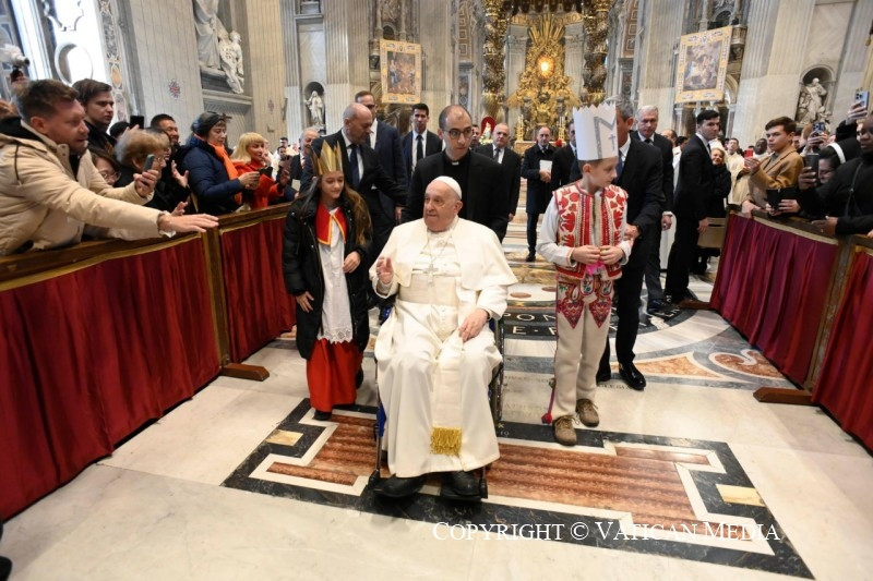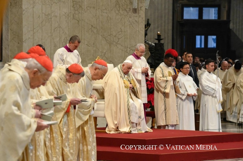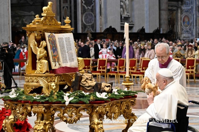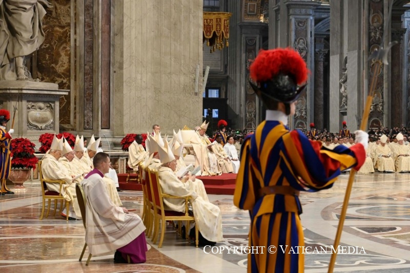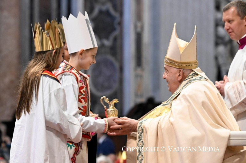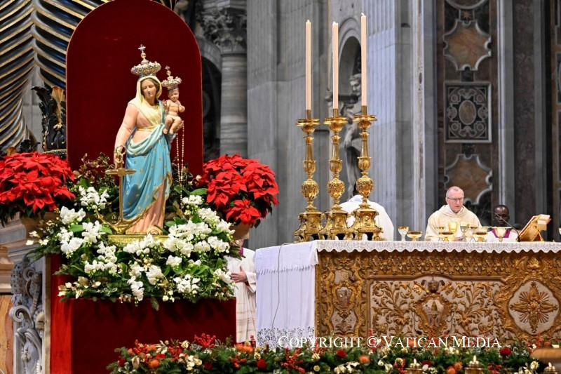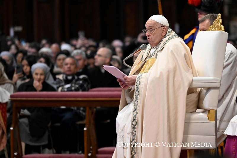 Bízzuk Máriára, Isten anyjára a most kezdődő új évet, hogy hozzá hasonlóan mi is megtanuljuk megtalálni Isten nagyságát az élet kicsinységében; hogy megtanuljunk gondoskodni minden asszonytól született teremtményről, mindenekelőtt az élet drága ajándékát őrizve, ahogyan Mária teszi: őrizve az anyaméhben fejlődő életet, a kisgyermekek életét, a szenvedők életét, a szegények életét, az idősek, a magányosak, a haldoklók életét. És ma, a béke világnapján, mindannyiunknak meg kell hallanunk ezt a Mária anyai szívéből fakadó kérést: őrizzük az életet, vegyük gondjainkba a sérült életet – annyi, de annyi sérült élet van! –, adjuk vissza a méltóságát minden „asszonytól született” életnek – ez az alapja a béke civilizációja építésének. Ezért „kérem, hogy komoly munkával mozdítsák elő az emberi élet méltósága iránti tiszteletet, a fogantatástól a természetes halálig, hogy minden ember szerethesse saját életét, és reménnyel tekintsen a jövőbe” (Üzenet a béke 58. világnapjára, 2025. január 1.).